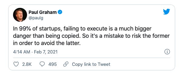 With startups you’re competing against yourself. Execution is the real challenge. Competition might even help you execute.