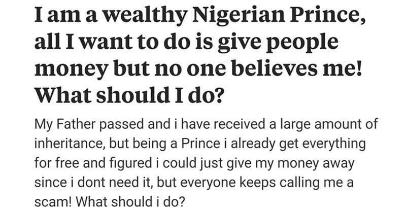 I’m not suggest you wire the money to the alleged Nigerian Prince. That’s not where this is useful.